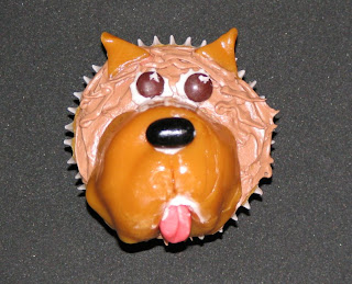 I think I have mentioned it several times before, but Natalie LOVES dogs. It was her first word, and when she sees one, even when they are very far away, she squeals, "DOGGIE!" I wanted to do a little something special for her birthday, but nothing big because that stresses me out. So I found these doggie cupcakes and tried to recreate them...if you saw how they are supposed to look (HERE) you would realize that mine are quite comical. But I'm okay with that. I am actually very happy with how they turned out. So here they are: